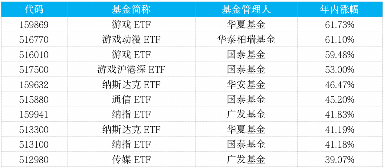 游戏ETF跃升规模前十,年内净值涨幅最大