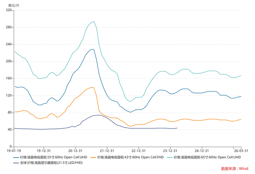 2025年,面板行业仍处于周期波动后的平稳调整中,供需结构性分化:LCD 领域通过积极的产能调控步入成熟稳定期,而 OLED 领域则正处于技术高投入与市场渗透率持续增长的阶段。市场呈现 LCD 技术主导成熟市场、OLED 技术引领高端增长的“双轨并行”的发展特点。以TV面板和显示器面板两个经典应用场景做参考,面板价格整体处于小幅震荡调整中。