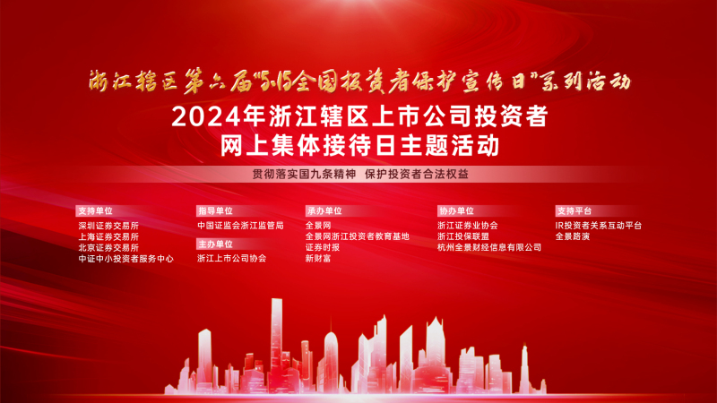 为推动上市公司做好投资者关系管理工作,更好帮助投资者了解辖区上市公司情况,进一步促进上市公司提升治理水平,不断提高公司质量,在浙江证监局指导下,浙江上市公司协会联合深圳市全景网络有限公司等机构共同举办辖区上市公司投资者网上集体接待日主题活动。